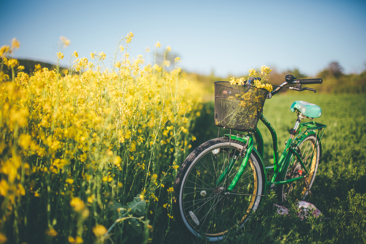 Biking through a rapeseed meadow in Suffolk