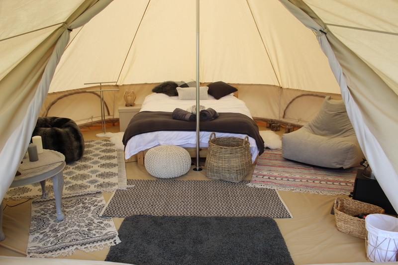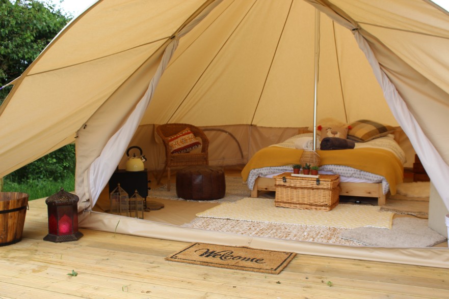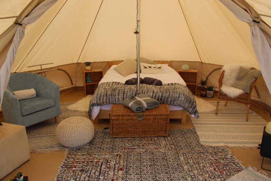 Our bell tents are set up for 2 adults sharing a double bed with some space to relax inside with casual chairs etc. We can also arrange 2 additional children’s floor beds to go into the tents. There is a one-off fee per child which would be added to the total cost for your stay.