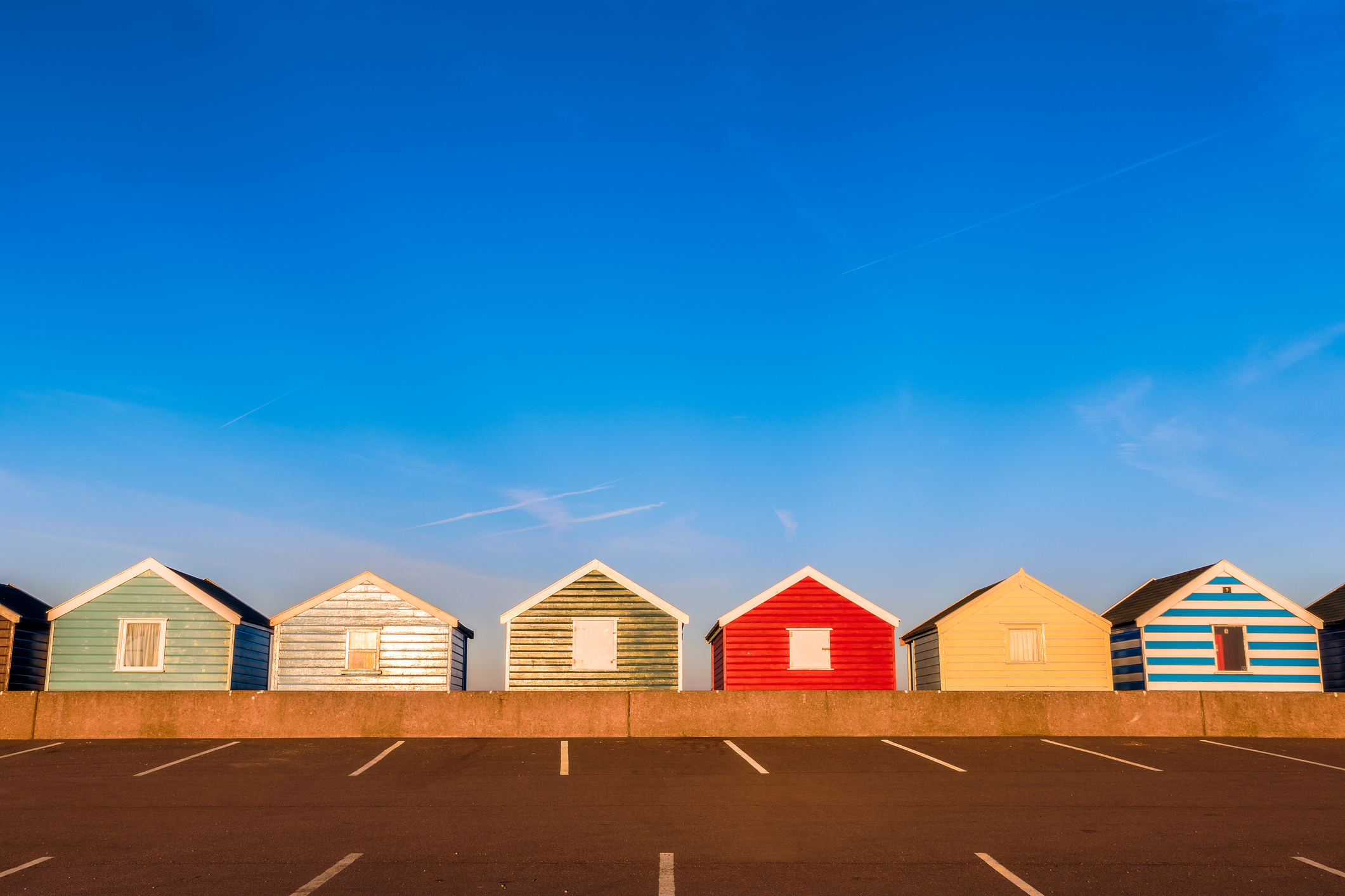 Blue sky and beach huts at Southwold